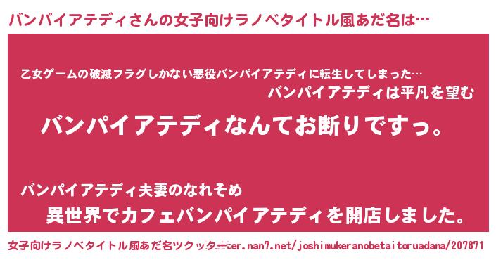 | 男性向けラノベタイトル風あだ名 | 『魔法科高校のバンパイアテディ』 |