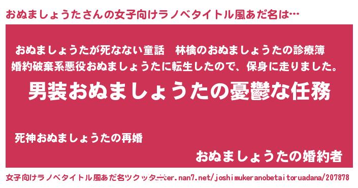 | 男性向けラノベタイトル風あだ名 | 『うちのおぬましょうたが世界を掌握している!』 |