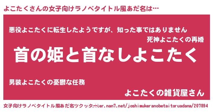 | 男性向けラノベタイトル風あだ名 | 『はたらくよこたくさま!』 |
