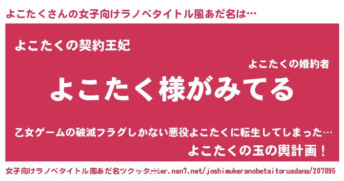 | ヘコむあだ名 | 『よこぷりん』『よこたく(笑)』 |