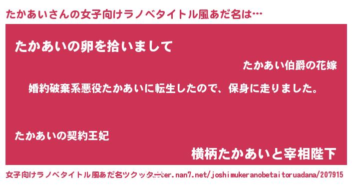 | 男性向けラノベタイトル風あだ名 | 『転生したらたかあいだった件』 |