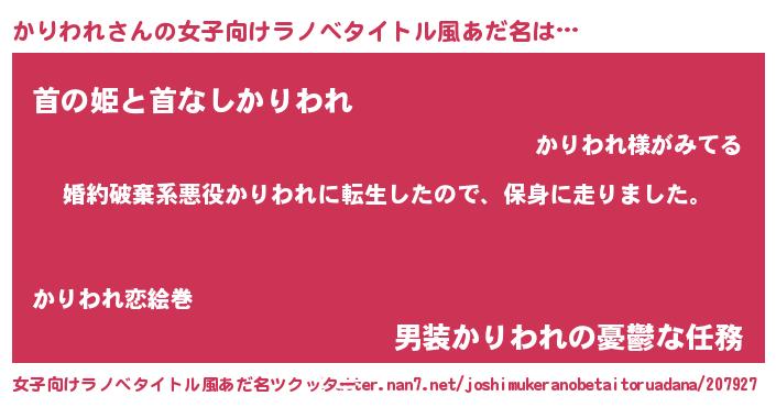 | 男性向けラノベタイトル風あだ名 | 『カリワレスレイヤー』 |