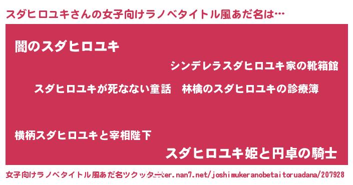 | 意味不明あだ名 | 『住所不定無職スダヒロユキ(98歳)』 |