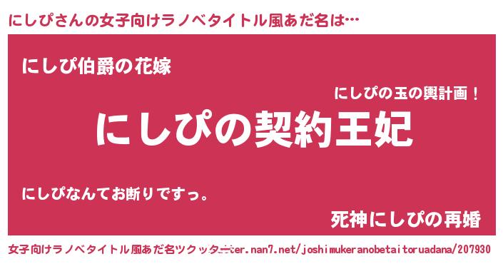 | 欧米人風あだ名 | 『ダルビッシュにしぴ』『ダニエルにしぴ』 |