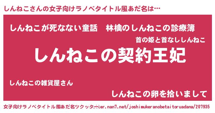 | 胡散臭い通販商品みたいなあだ名 | 『来世でも幸せになれる健康食品…その名も「しんねこ」』 |