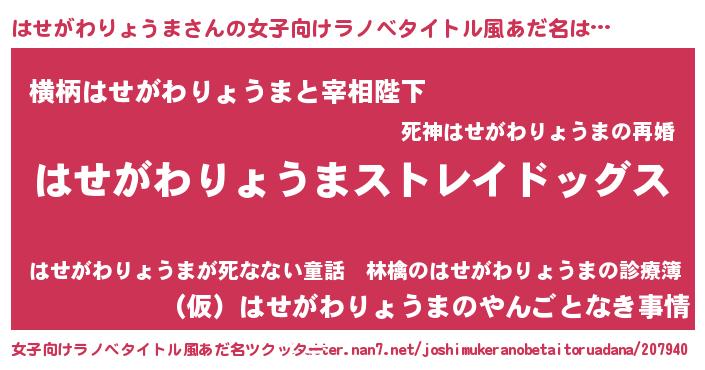 | 男性向けラノベタイトル風あだ名 | 『Re:はせがわりょうまから始める異世界生活』 |
