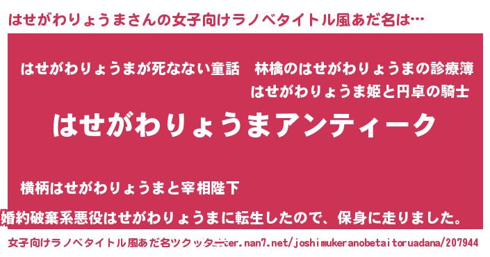 | 胡散臭い通販商品みたいなあだ名 | 『テレビで話題のアガリクス…その名も「はせがわりょうま」』 |