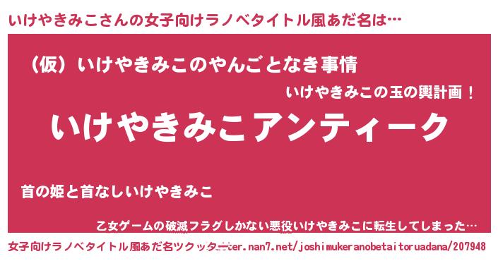 | 意味不明あだ名 | 『自称いけやきみこ』 |
