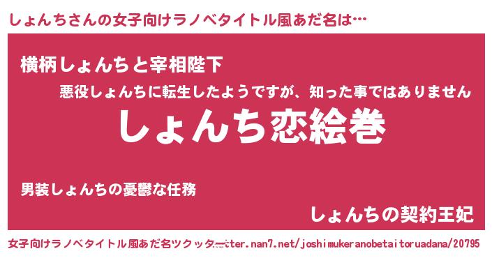 | ヘコむあだ名 | 『しょんち(笑)』『なまこ酢』 |