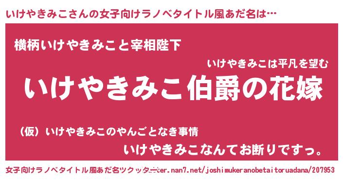 | 肩書あだ名 | 『いけやきみこ総理大臣』 |