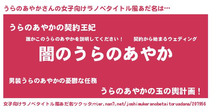 | 男性向けラノベタイトル風あだ名 | 『Re:うらのあやかから始める異世界生活』 |