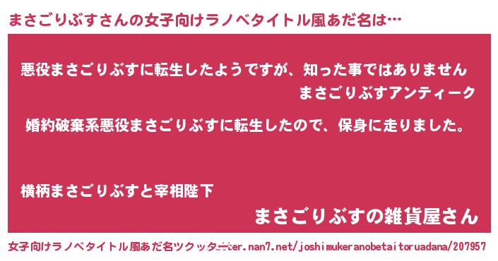 | 男性向けラノベタイトル風あだ名 | 『マサゴリブススレイヤー』 |