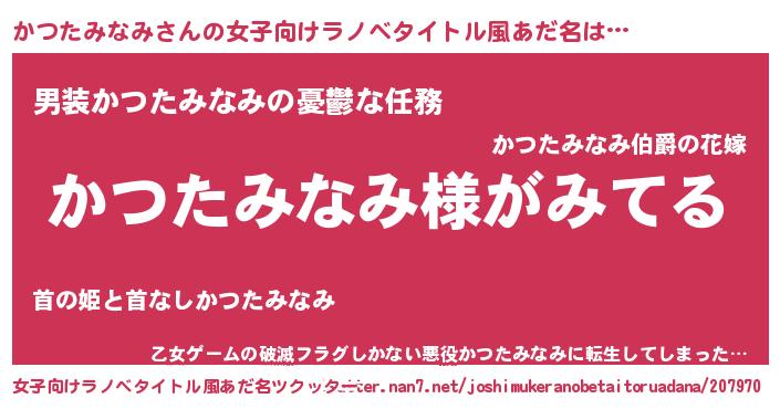 | 男性向けラノベタイトル風あだ名 | 『かつたみなみの嫁は女の子じゃないと思った?』 |
