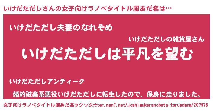 | 胡散臭い通販商品みたいなあだ名 | 『信頼と実績のサプリメント…その名も「いけだただし」』 |
