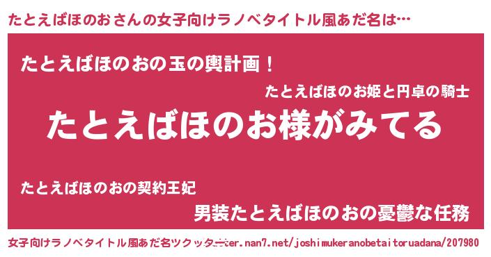 | 男性向けラノベタイトル風あだ名 | 『たとえばほのおの嫁は女の子じゃないと思った?』 |