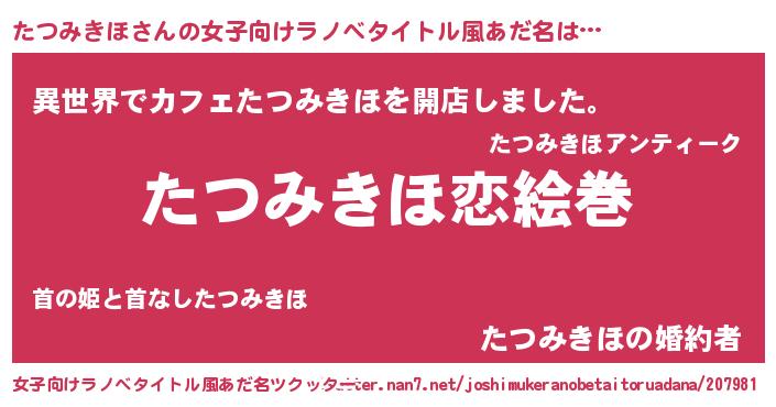 | 伝説のあだ名 | 『魔王と互角に渡り合う占い師たつみきほ』 |