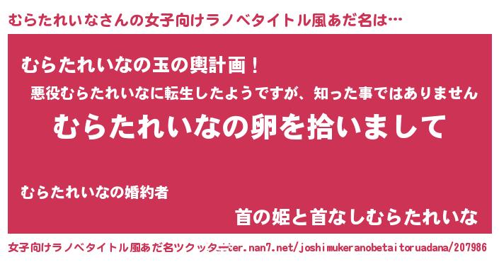 | 男性向けラノベタイトル風あだ名 | 『ダンジョンにむらたれいなを求めるのは間違っているだろうか』 |