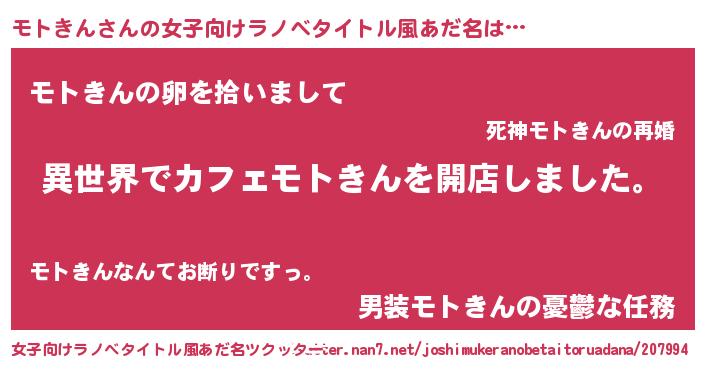 | 男性向けラノベタイトル風あだ名 | 『誰もが恐れるあのモトきんが、ぼくの専属メイドになるようです。』 |