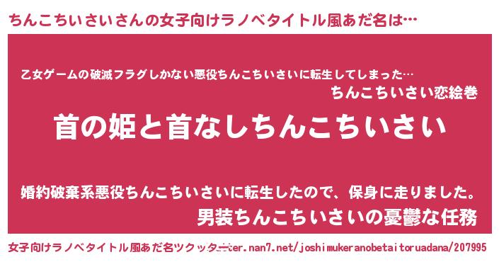 | 男性向けラノベタイトル風あだ名 | 『はたらくちんこちいさいさま!』 |