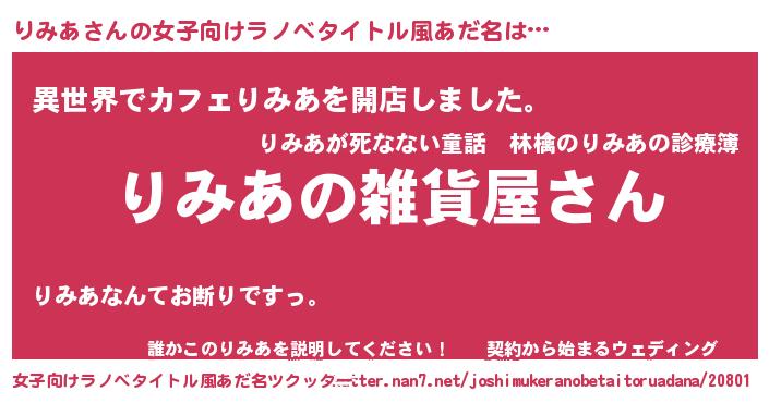 | 胡散臭い通販商品みたいなあだ名 | 『幸せが訪れる高級そうな壺…その名も「りみあ」』 |