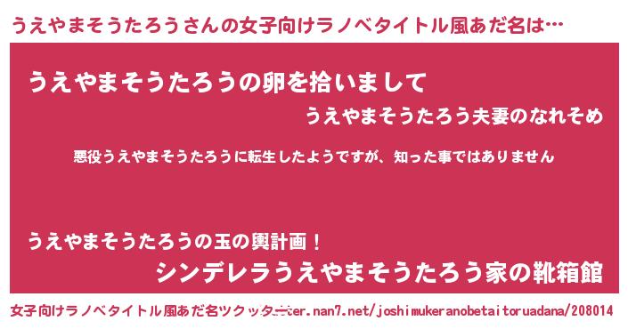 | 胡散臭い通販商品みたいなあだ名 | 『あなたにだけ特別に提供する100年もののヴィンテージワイン…その名も「うえやまそうたろう」』 |