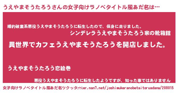 | 胡散臭い通販商品みたいなあだ名 | 『前代未聞の健康食品…その名も「うえやまそうたろう」』 |
