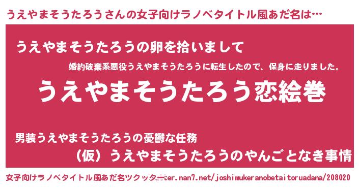 | 男性向けラノベタイトル風あだ名 | 『ノーゲーム・ノーウエヤマソウタロウ』 |