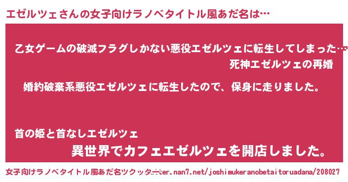| 男性向けラノベタイトル風あだ名 | 『エゼルツェスレイヤー』 |
