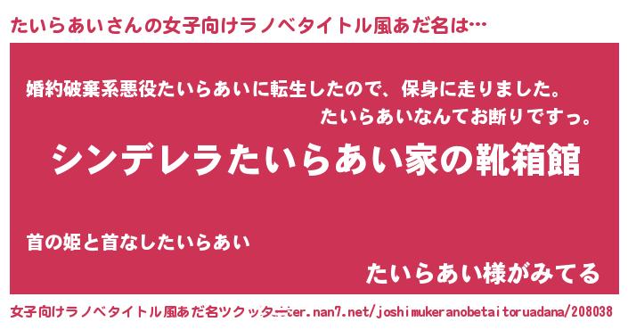 | 男性向けラノベタイトル風あだ名 | 『緋弾のタイラアイ』 |