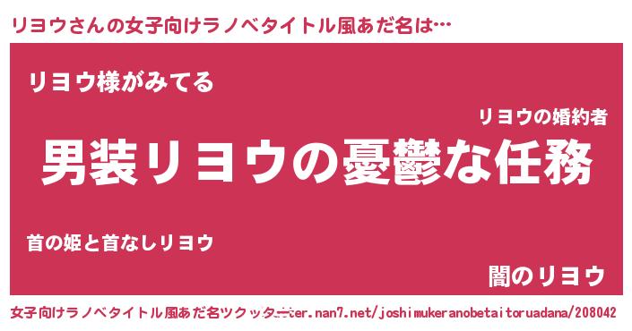 | 胡散臭い通販商品みたいなあだ名 | 『伝統あるサプリメント…その名も「リヨウ」』 |