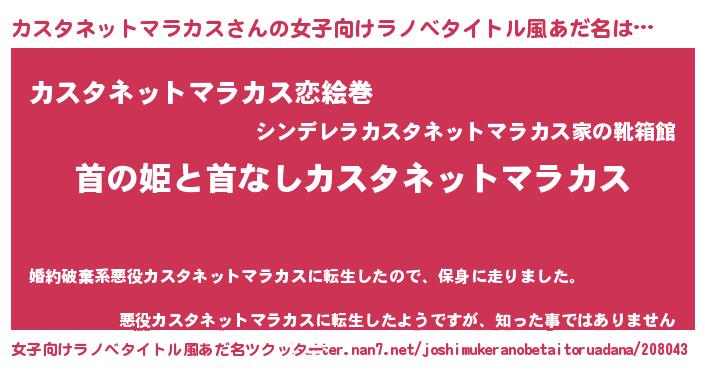 | 男性向けラノベタイトル風あだ名 | 『はたらくカスタネットマラカスさま!』 |