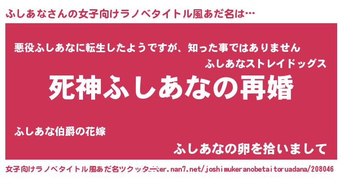 | 伝説のあだ名 | 『救世主となる錬金術士ふしあな』 |