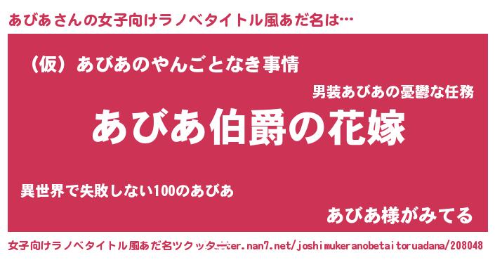 | 意味不明あだ名 | 『あびあフォーエバー』『ペロリンあびあ』 |
