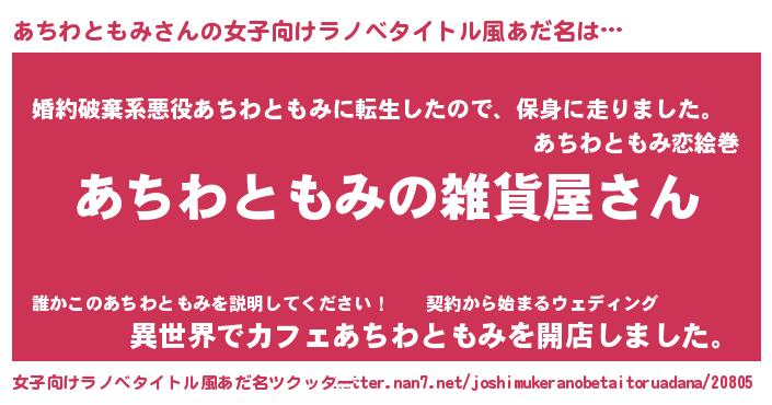 | 意味不明あだ名 | 『あちわともみフォーエバー』 |