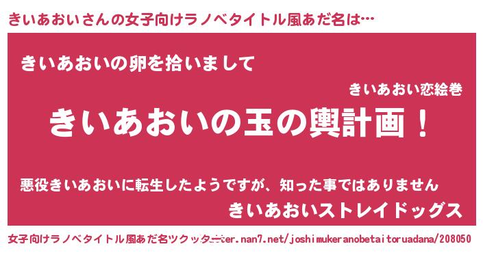 | 男性向けラノベタイトル風あだ名 | 『きいあおい~年齢イコール彼女いない歴の魔法使い~』 |