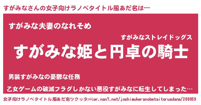 | 男性向けラノベタイトル風あだ名 | 『スガミナアートオンライン』 |