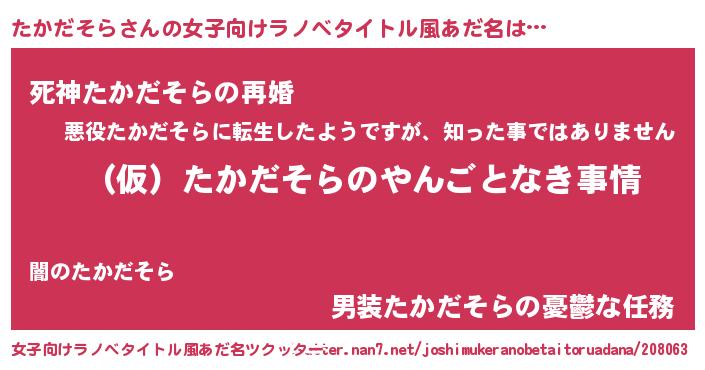 | 胡散臭い通販商品みたいなあだ名 | 『必ず成功する霊験あらたかなお札…その名も「たかだそら」』 |