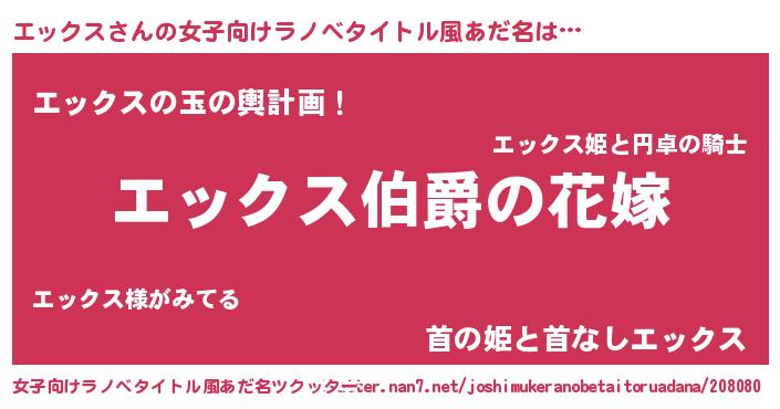 | 意味不明あだ名 | 『エックスフォーエバー』 |
