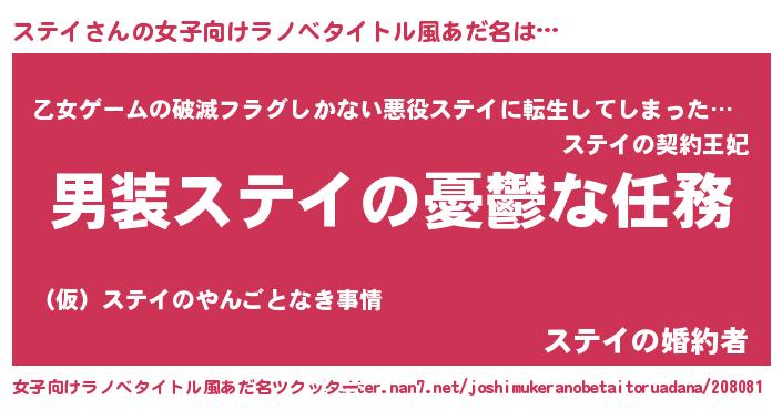 | 胡散臭い通販商品みたいなあだ名 | 『あなたにだけ特別に提供する世界で10本だけ現存している希少なブランデー…その名も「ステイ」』 |