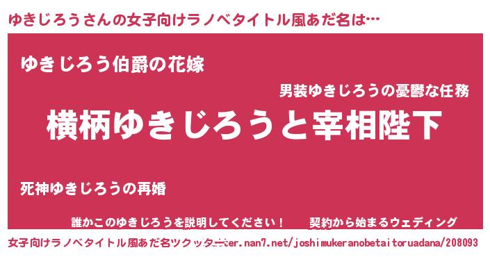| 男性向けラノベタイトル風あだ名 | 『ゆきじろうに滅ぼされるだけの簡単なお仕事です』 |