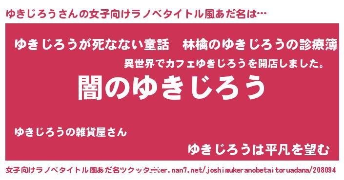 | 男性向けラノベタイトル風あだ名 | 『Re:ゆきじろうから始める異世界生活』 |