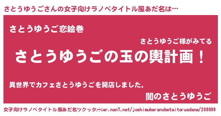 | 男性向けラノベタイトル風あだ名 | 『転生したらさとうゆうごだった件』 |