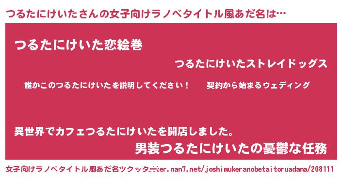 | 男性向けラノベタイトル風あだ名 | 『ツルタニケイタアートオンライン』 |