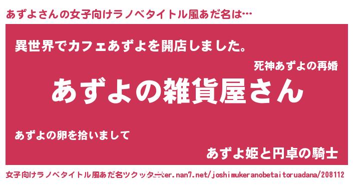 | ヒーロー風カッコイイあだ名 | 『ウルトラあずよマン』『ネオアズヨ』 |