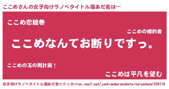 | 男性向けラノベタイトル風あだ名 | 『魔法科高校のここめ』 |