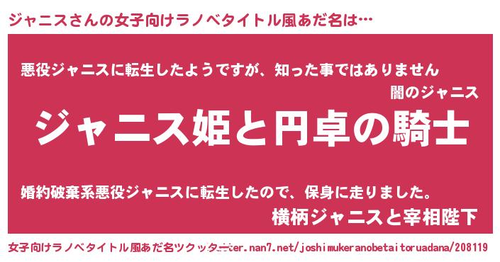 | 男性向けラノベタイトル風あだ名 | 『ジャニスアートオンライン』 |