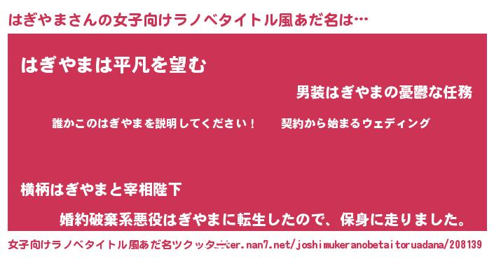 | 男性向けラノベタイトル風あだ名 | 『ハギヤマアートオンライン』 |
