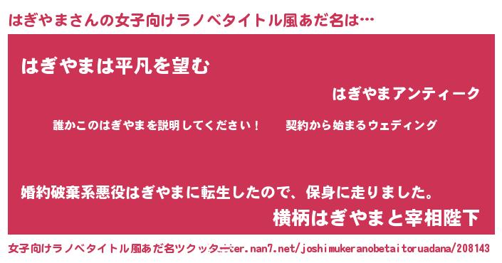 | 男性向けラノベタイトル風あだ名 | 『ハギヤマアートオンライン』 |