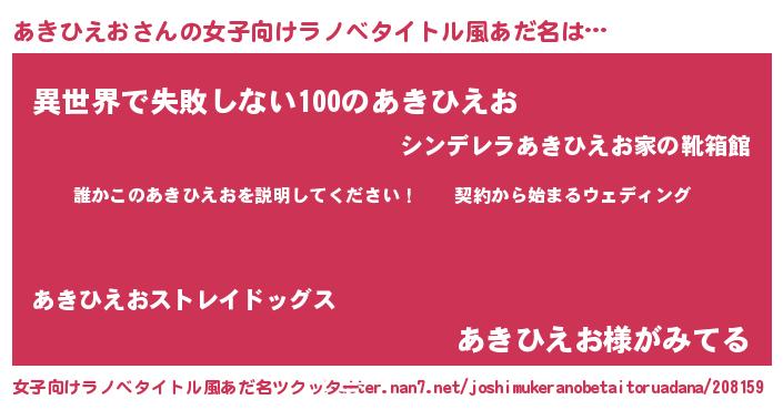 | ヘコむあだ名 | 『あきにゅー』『あきひえお(笑)』 |