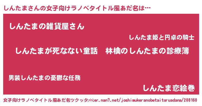 | 男性向けラノベタイトル風あだ名 | 『魔弾の王としんたま』『しんたまの憂鬱』 |